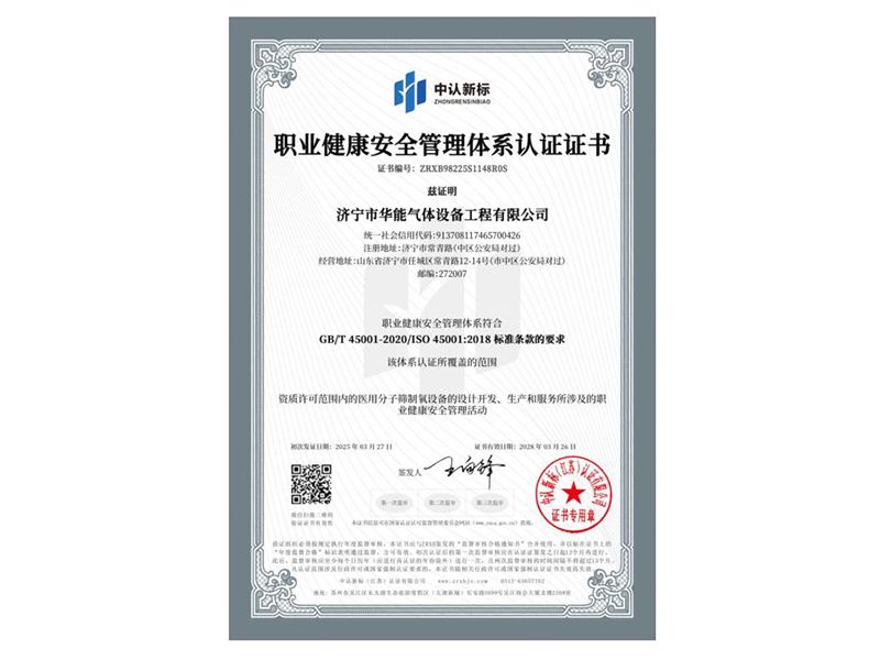 職業(yè)健康安全管理體系認(rèn)證證書
